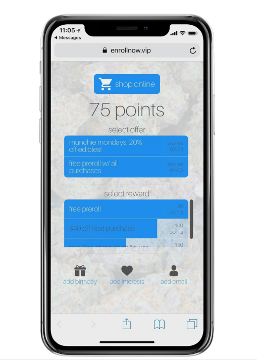 dispensaries can choose between three loyalty reward settings:
